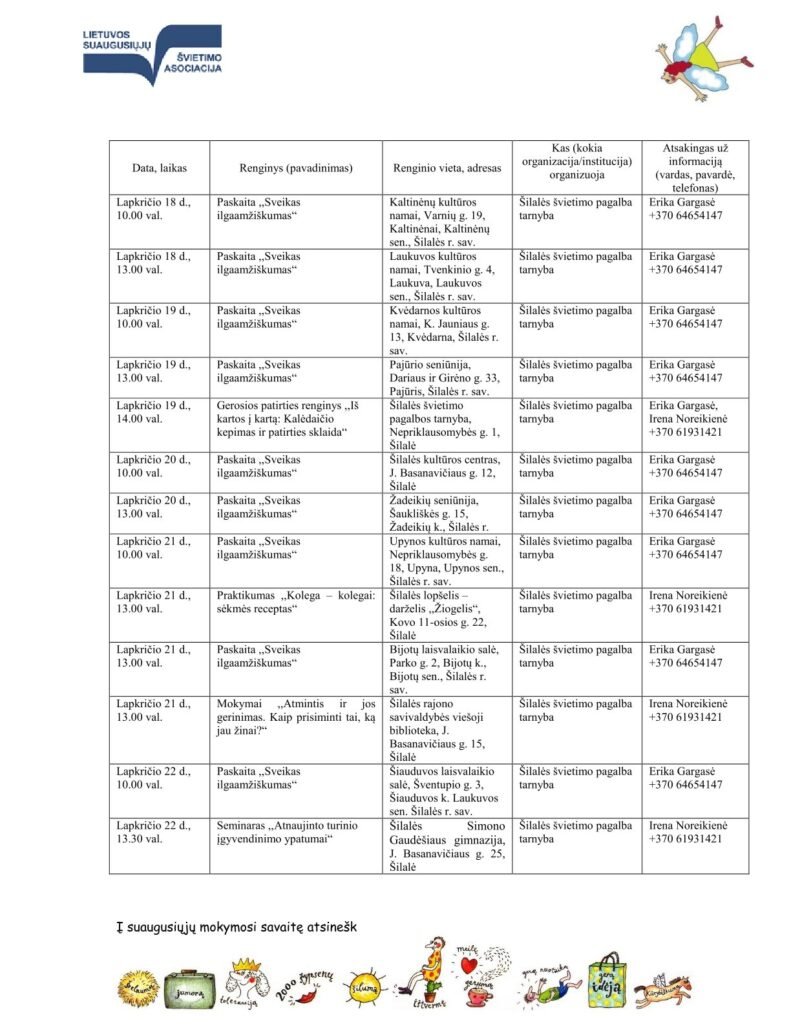 Šilalės švietimo pagalbos tarnyba organizuoja ir kviečia visus suaugusiuosius švęsti mokymosi džiaugsmą renginiuose.